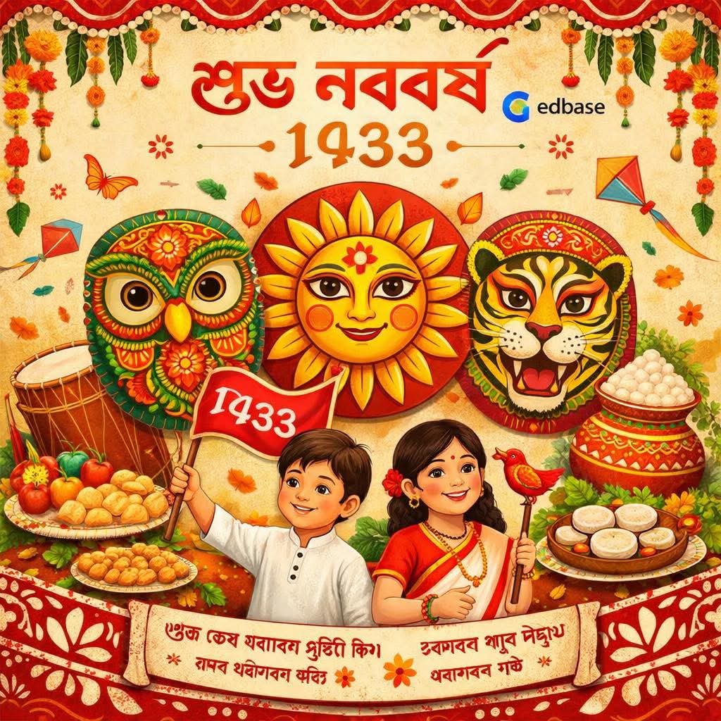 এই পহেলা বৈশাখে edbase পরিবারের পক্ষ থেকে সবার জন্য রইলো ভালোবাসা, শুভেচ্ছা ও আন্তরিক অভিনন্দন।